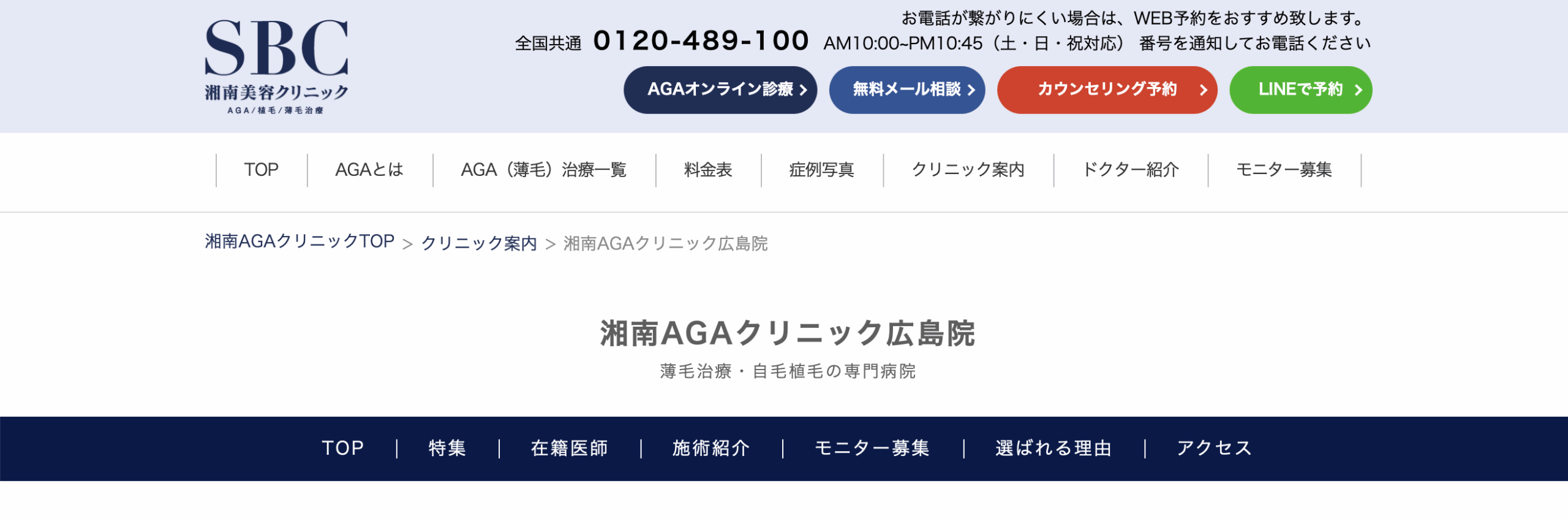 湘南AGAクリニック広島院は、湘南美容グループの、
