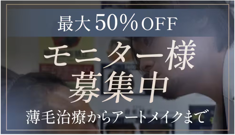 | 説明 | 初診料はかかりません。薄毛の症状を診断し、最適な治療プランを無料で提案。 |
