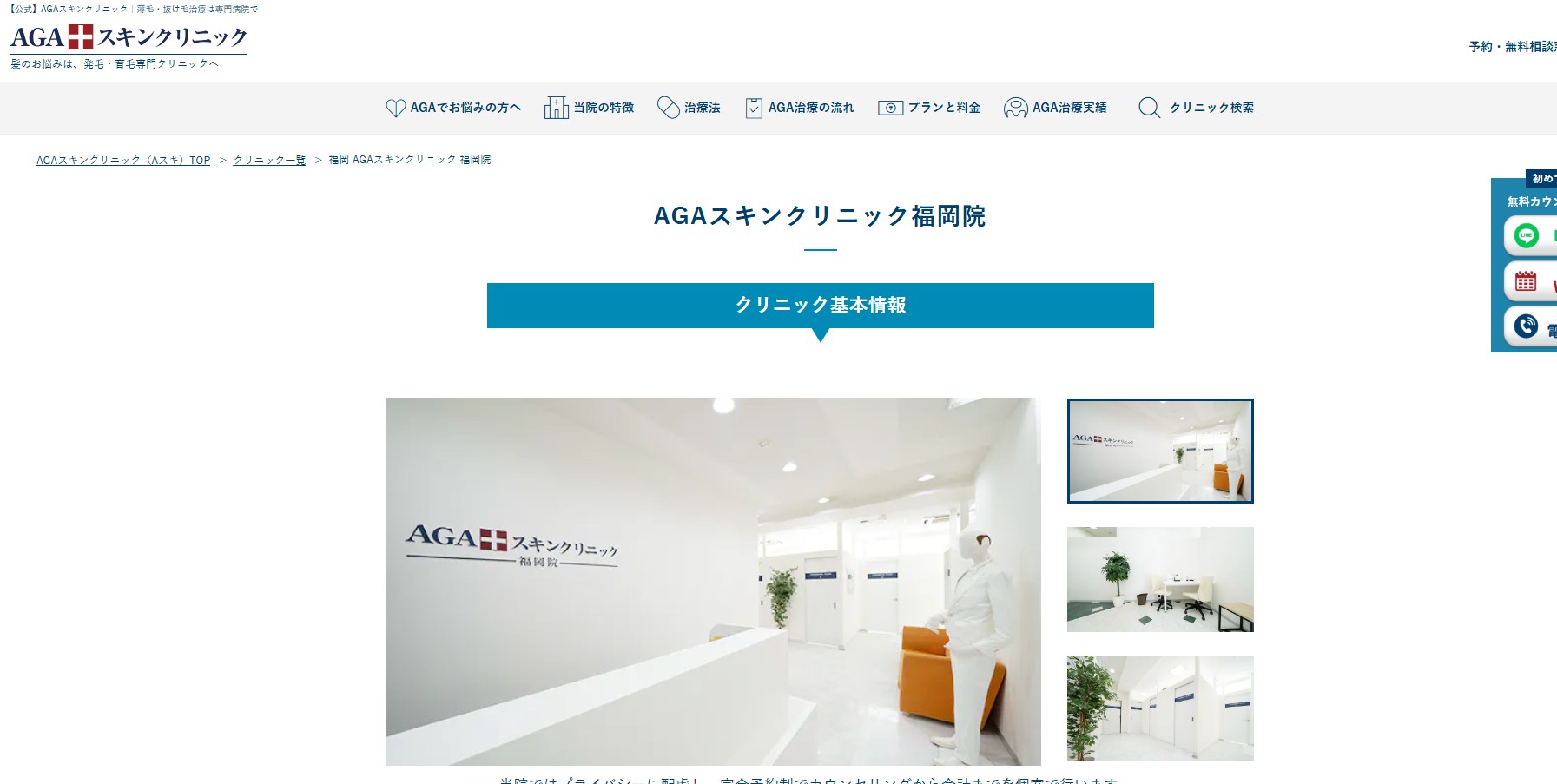 発毛専門クリニック「AGAスキンクリニック」の福岡院。全国に60院以上を展開し、内服・外用から植毛まで幅広いAGA治療を提供しています。