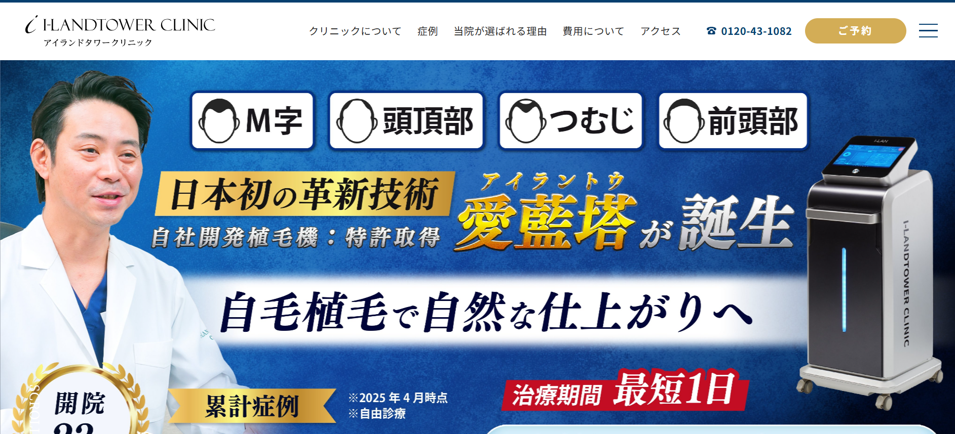 アイランドタワークリニック大阪は、自毛植毛を専門に行う医療機関として数多くの症例実績を持つクリニックです。