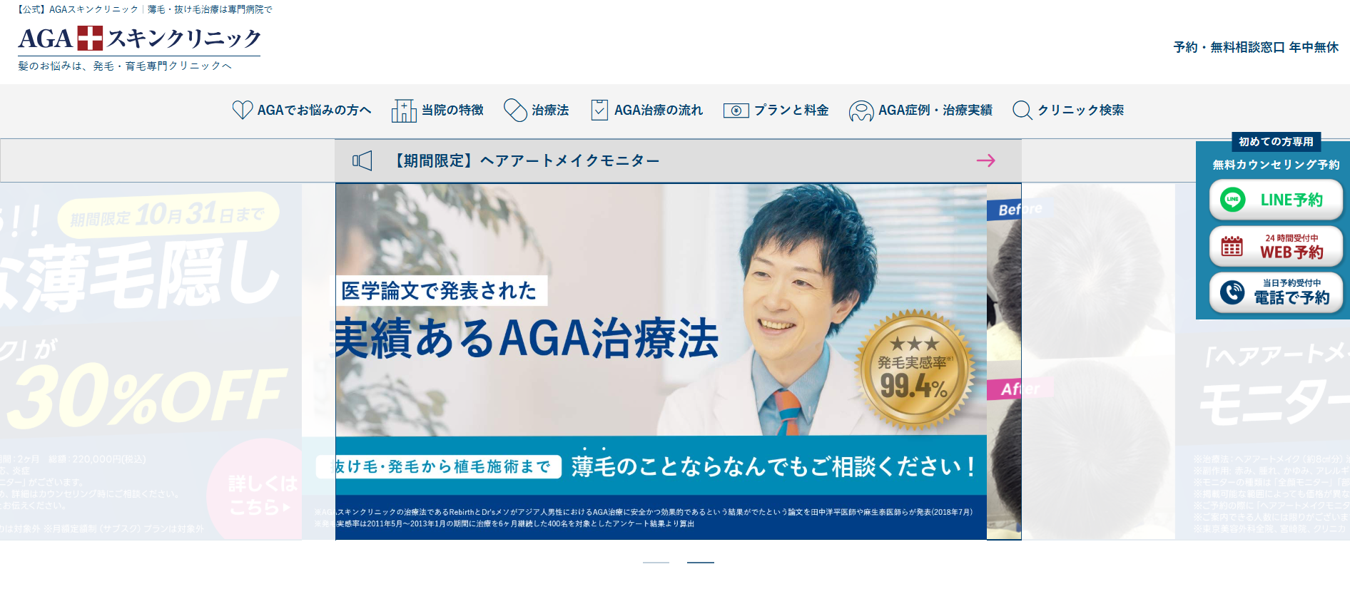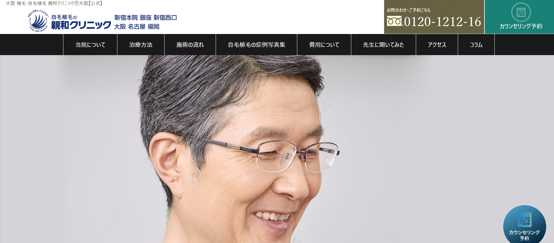 | 説明 | 初診料はかかりません。薄毛の症状を診断し、最適な治療プランを無料で提案。 |