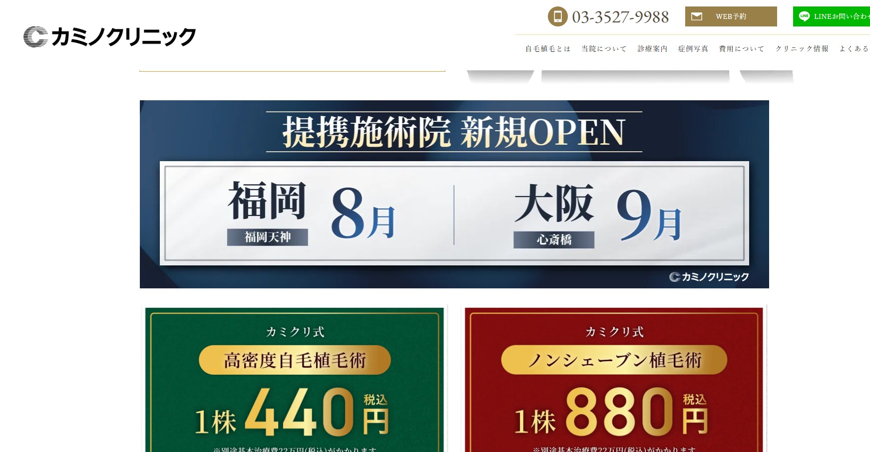 カミクリ式高密度自毛植毛術 カミクリ式ノンシェーブン植毛術 |