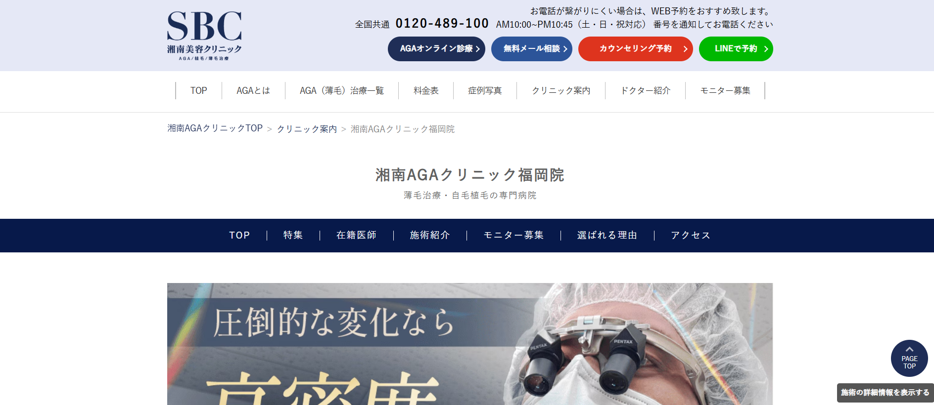 湘南AGAクリニック福岡院は天神駅から徒歩2分と好アクセスで、鹿児島からも新幹線+地下鉄で通いやすい立地です。