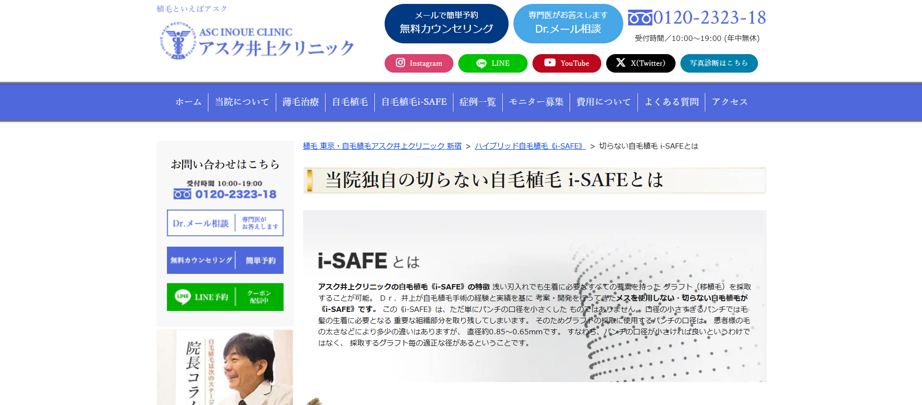 | 施術法 | i-Direct法(刈り上げ式 FUE ベース) U-Direct法(刈り上げない方式) |