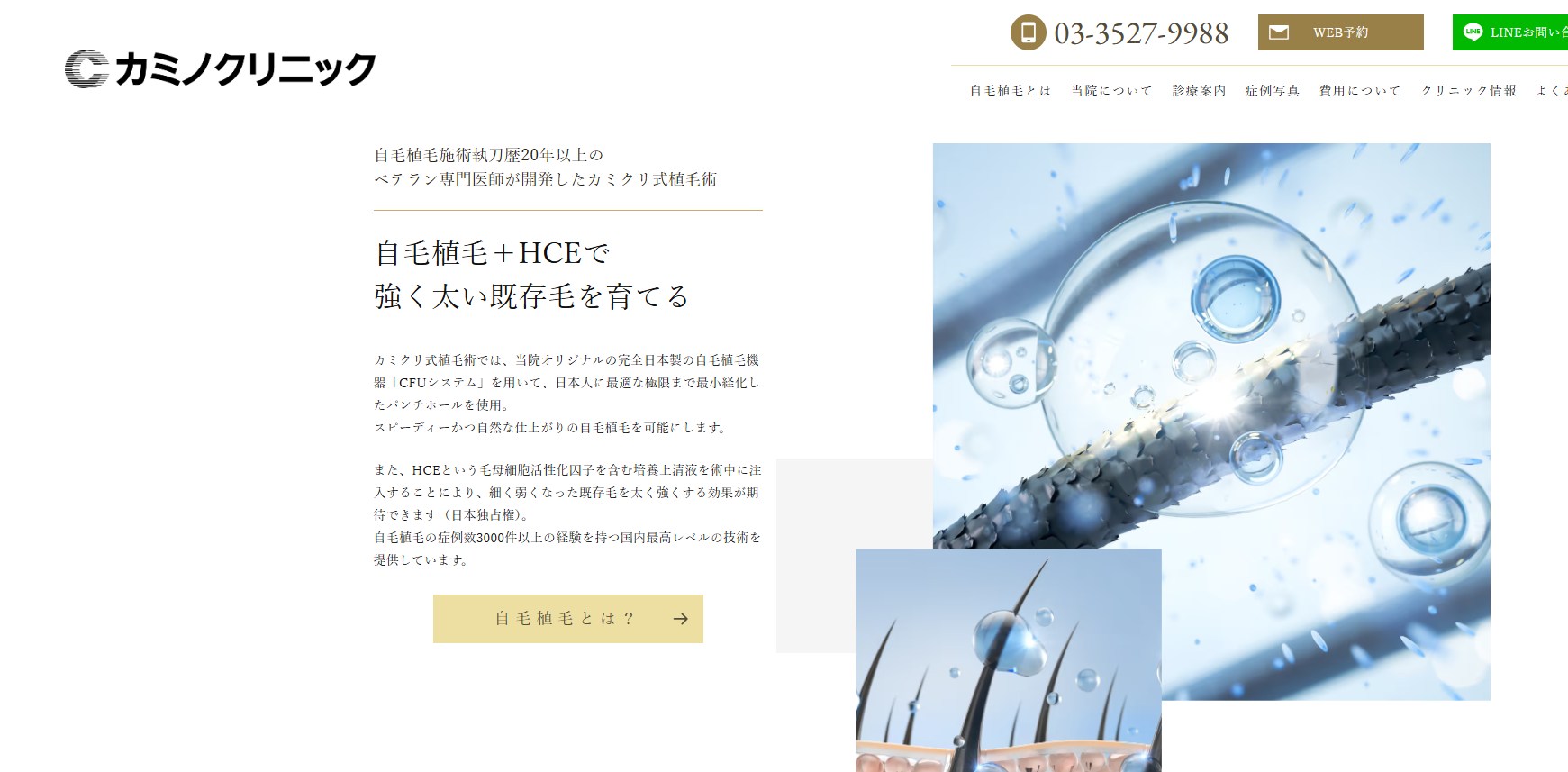 独自の「カミクリ式植毛術」は日本人の髪質に最適化されたFUE法で、毛流れや生え際ラインまで自然に再現できるデザイン力が強みです。高密度植毛にも対応し、従来80本/㎠程度だった移植密度を150本/㎠以上に高めることが可能とされています。