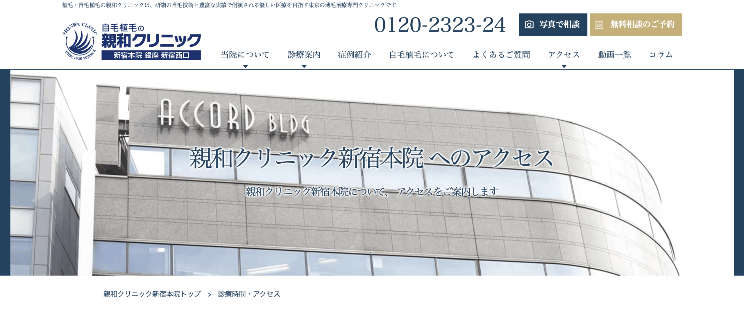 親和クリニック新宿本院は、全国4院を展開する自毛植毛専門クリニックの本院で、これまでに累計25,000件以上の症例実績を誇ります。