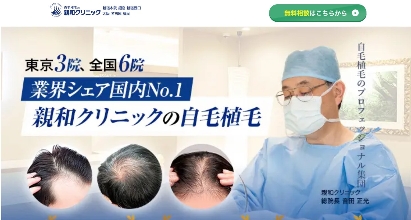 親和クリニックは、自毛植毛シェア直近3年連続No.1の実績を持ちます。年間手術件数2400件以上です。