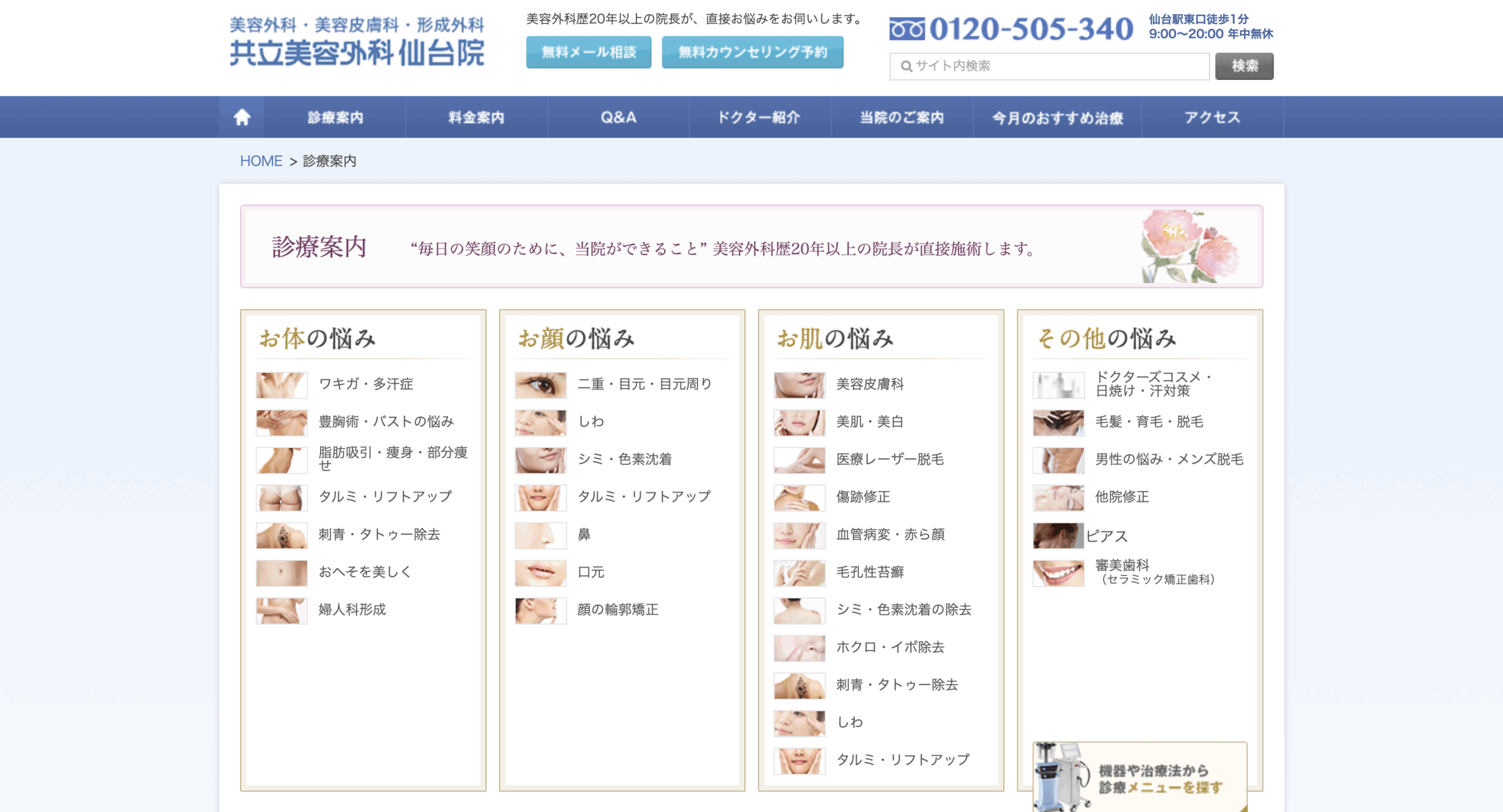 共立美容外科 仙台院は、全国に展開する共立美容グループの一院であり、