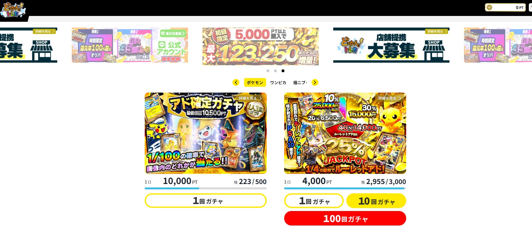 どっかん!トレカは、少額からでも高額カードを狙える“ワクワク感”と、アド確定・高還元オリパの安心感を両立した人気のオンラインオリパサイトです。