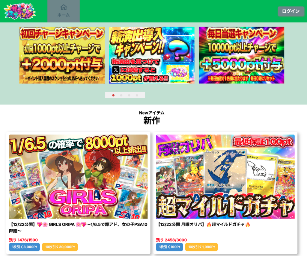 最初は低額のガチャや、ログインボーナス(もしあれば)などを活用して、使用感を確かめてみるのがおすすめです。 あなたもガチャステーションで、憧れのPSA10や高額カードを狙ってみてはいかがでしょうか?