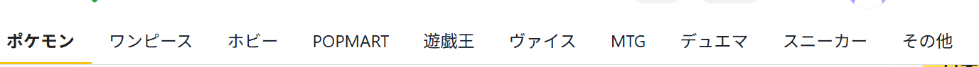 取り扱いタイトル ポケモン、ワンピース、ホビー、POPMART、遊戯王、ヴァイス、MTG、デュエマ、スニーカー、その他