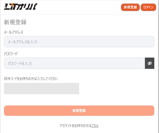 新規登録画面には招待コード入力欄がありますが、空欄のままでも問題なく登録できます。
