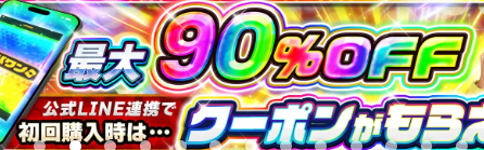 新規登録時、LINE連携をして初回ポイント購入をすると、ポイント購入時に使える「90%OFFクーポン」が付与されます。