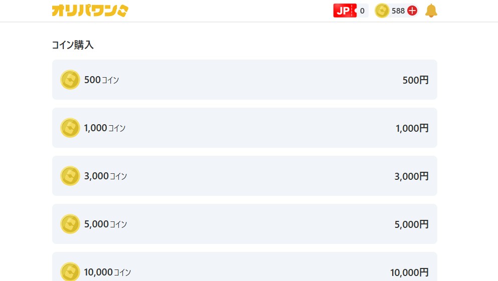 オリパワンの招待コードと初回割引クーポンを使えば、10000コイン購入で4000コインお得にスタートできます。
