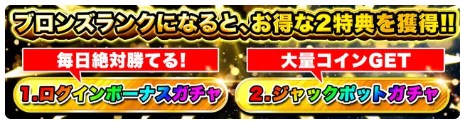 初回コイン購入時の300ポイントと、累計購入10,000コイン達成時の1,200ポイントで構成されます。