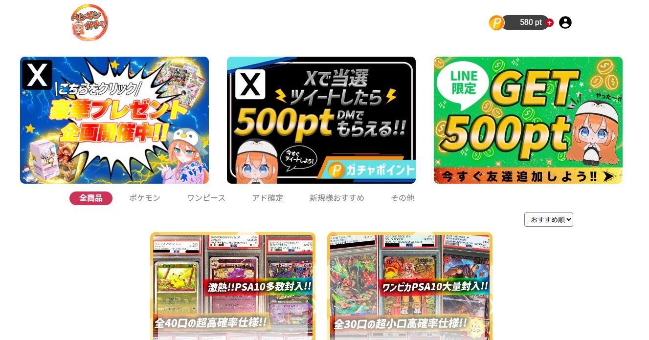 | ペンギンガチャ | 日本トレカセンター | DOPA | オリパワン | オリくじ | |