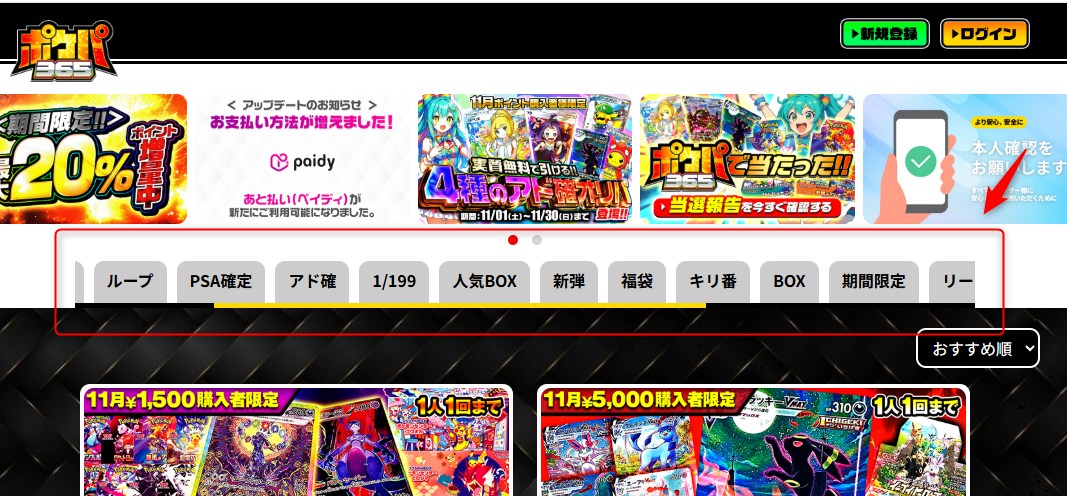 ※トップページ上部のタグでオリパの絞り込みができます。