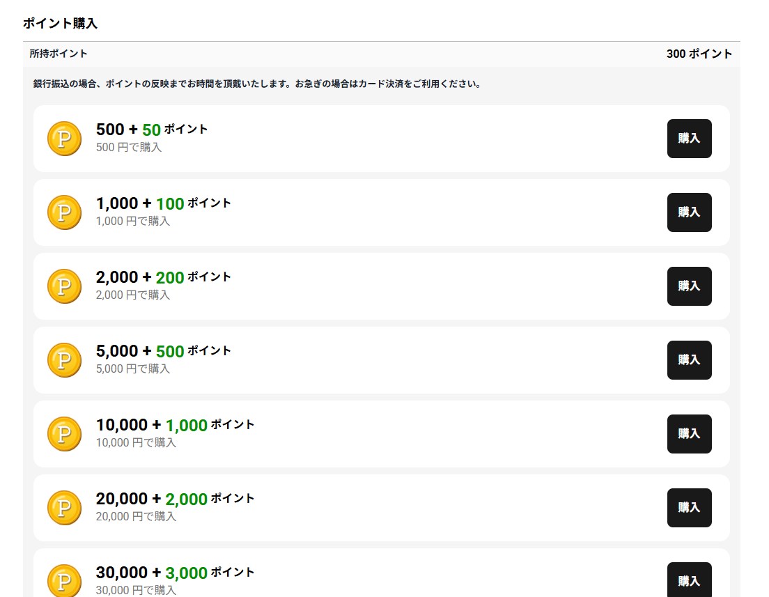 | ポイント(本体 + ボーナス) | 購入金額 |