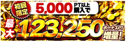 初回5000p以上の購入で最大123,250p増量キャンペーンを実施中です。