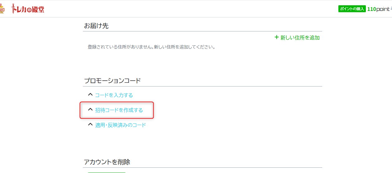 トレカの殿堂の「招待コード」は、友達紹介でポイントがもらえる仕組みのことです。