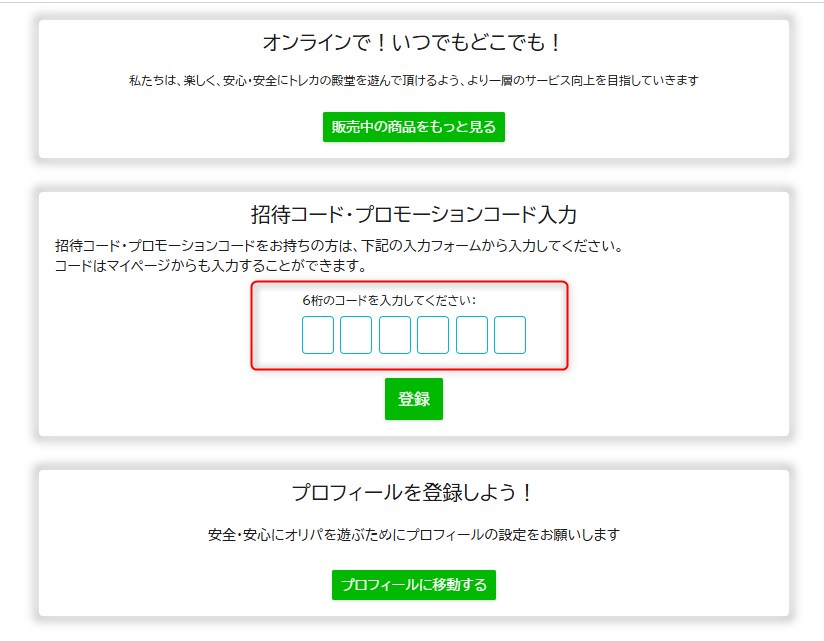 既にトレカの殿堂を利用中の人が発行できるコードを「友人・SNS・掲示板」などで受け取る。