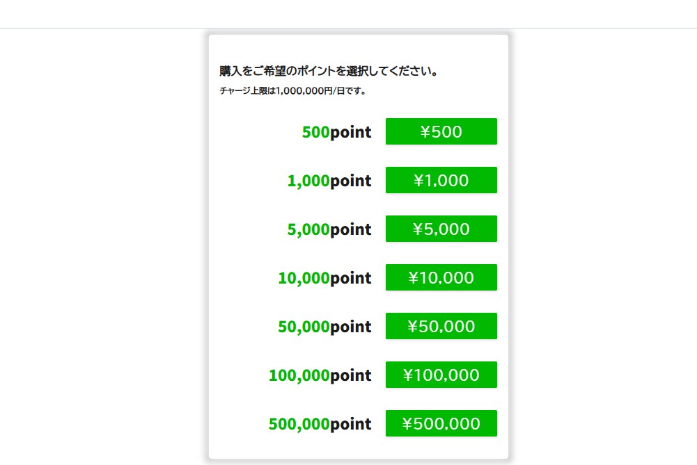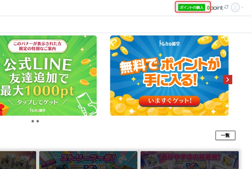 ログイン後、公式サイト右上「ポイントの購入」をタップ。