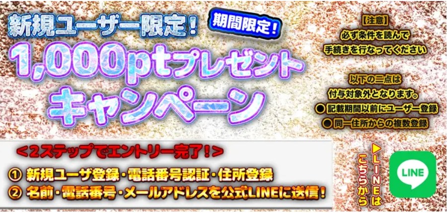 SMS認証で300ポイント。初回課金でさらに300ポイントもらえます。