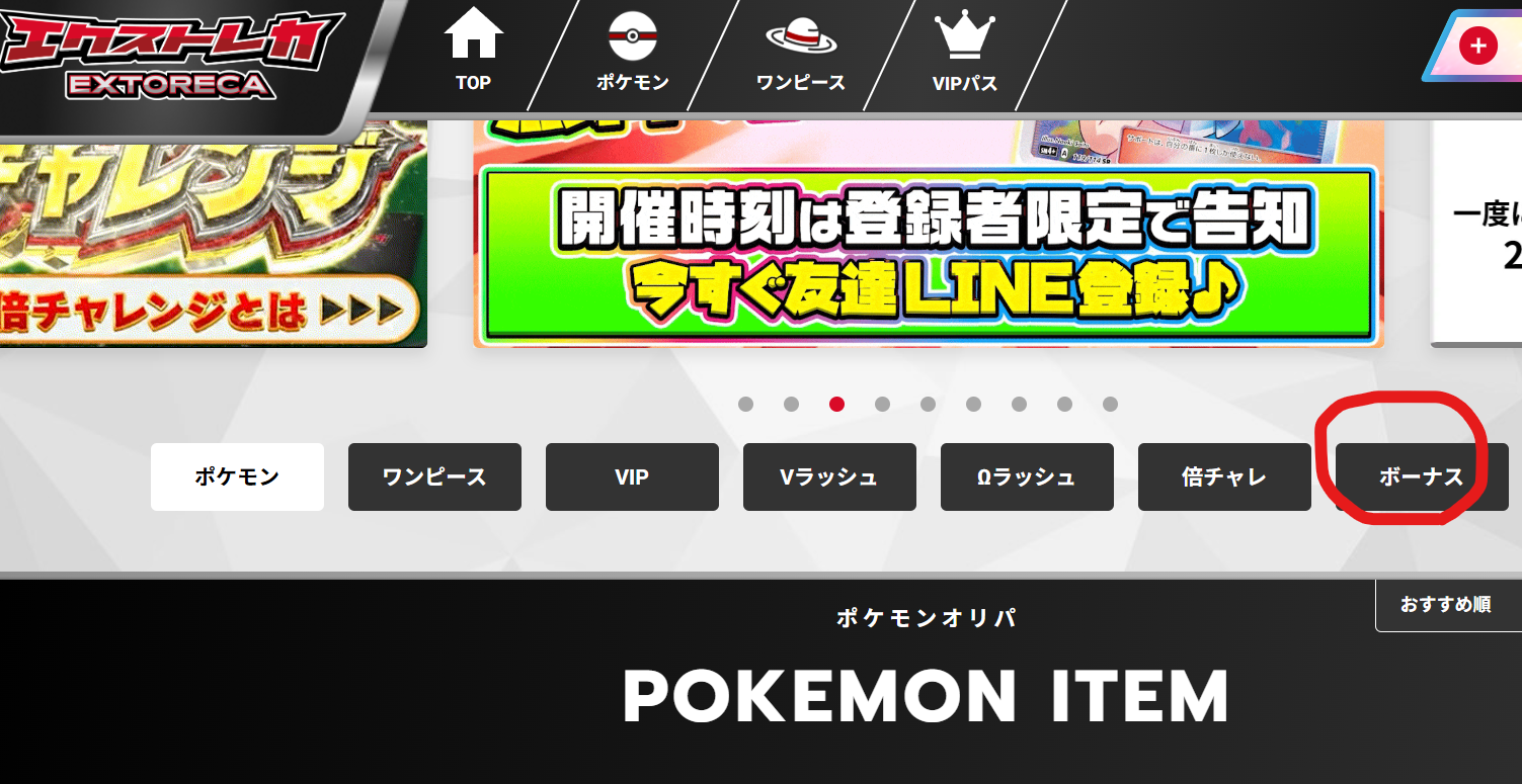 ボーナスを選択すると、「ボーナスオリパ」が表示されます。