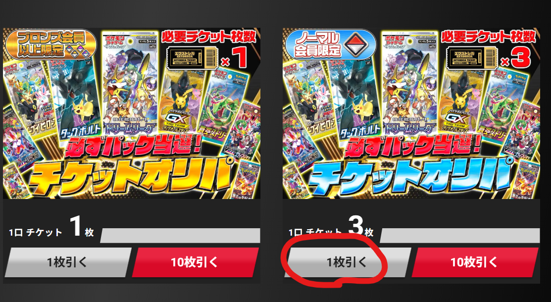 どのオリパがチケット対応か、必ず事前に確認しておきましょう。