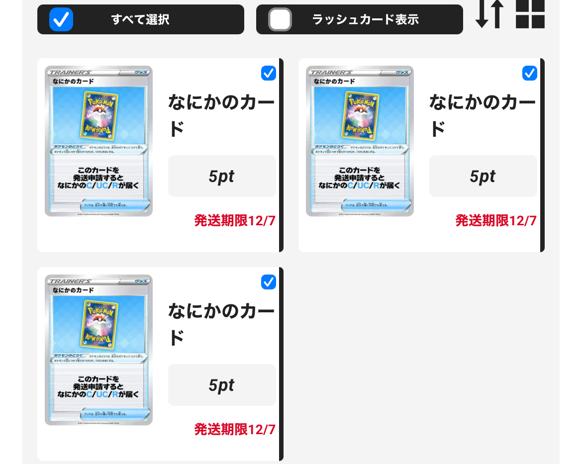複数枚をまとめて発送すれば送料を抑えられ、結果的にもっと効率よく遊べます。