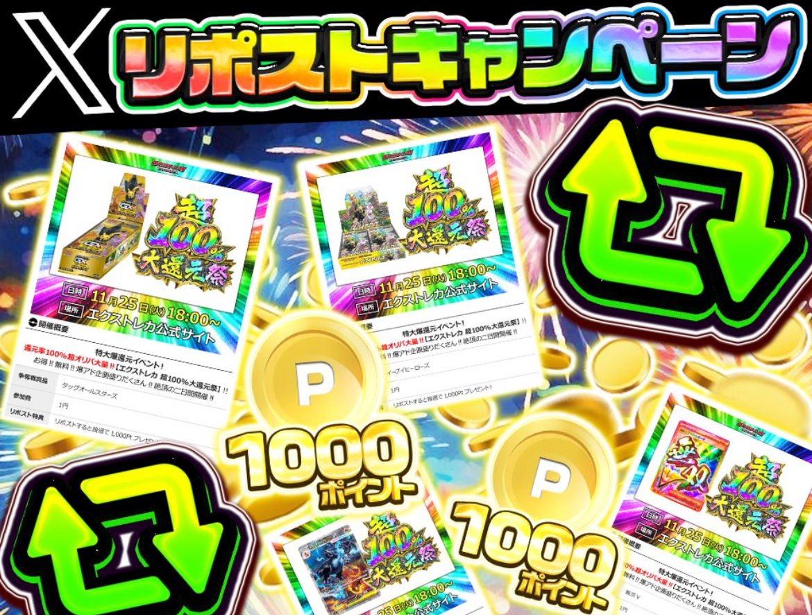 高額カードを当てたときにXで投稿するだけで、抽選でポイントが当たるキャンペーン。