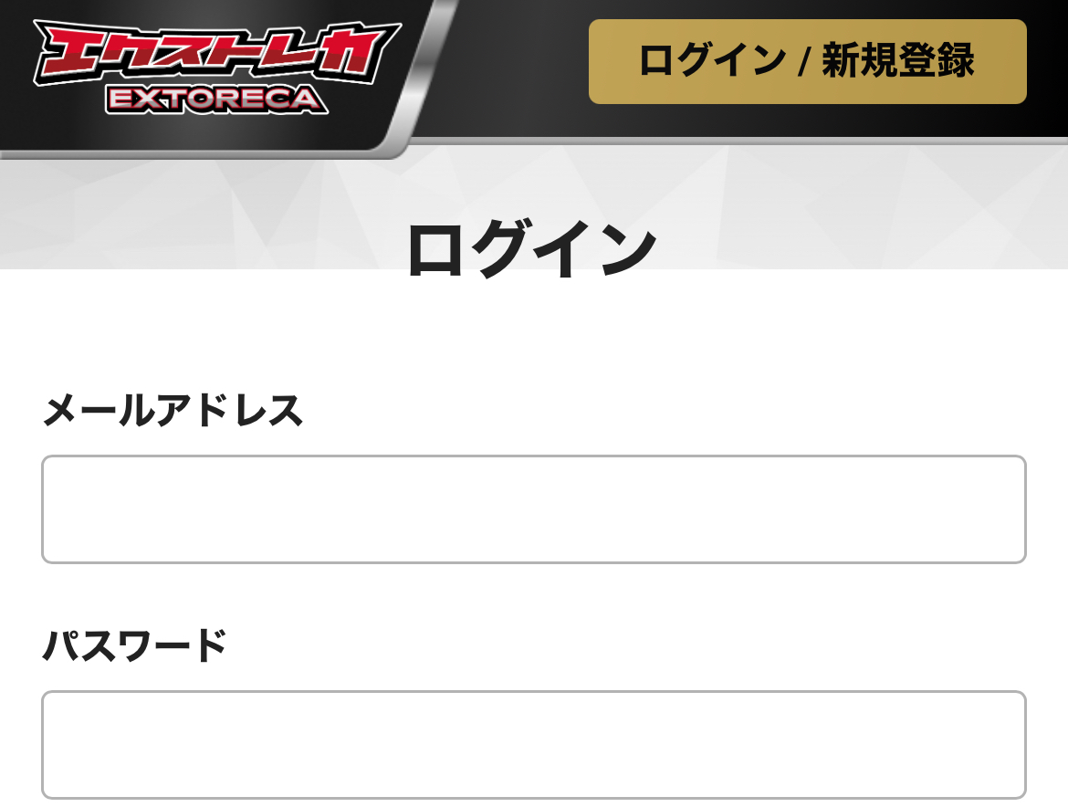 まずは、エクストレカの公式サイトにてメールアドレスとパスワードを入力してログイン。