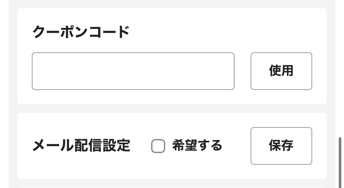 マイページを開いたら、クーポンコードまで下スクロールをします。