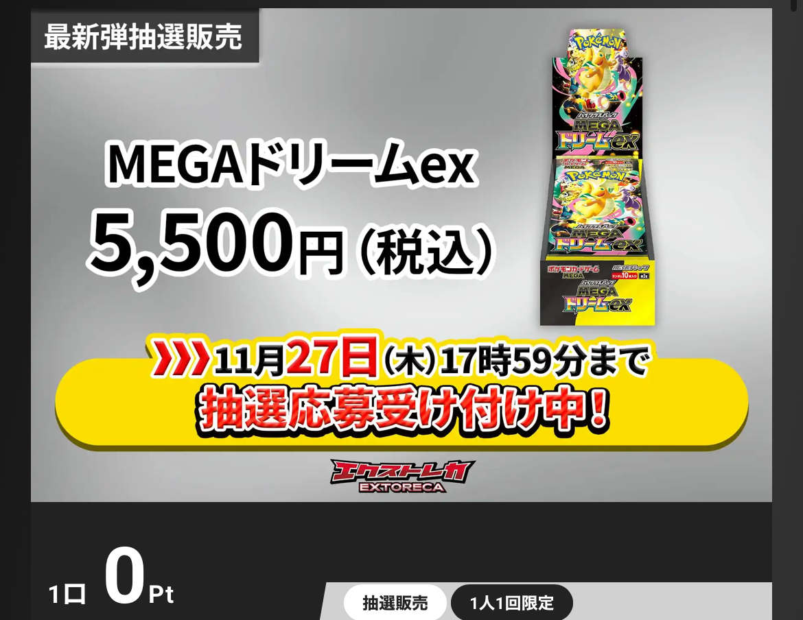 エクストレカでは、登録ユーザー向けに随時抽選販売が開催されています。