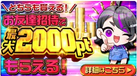さらに招待した友達が初回課金で500p、累計10000p購入で2000pもらえます。