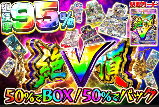 | 特徴 | BOX・パック・1,000pt以上が1/3の割合で当選、15%でVラッシュ追加当選 |