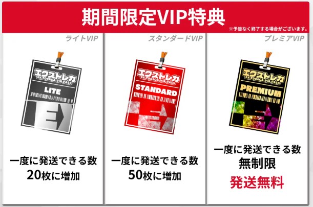 エクストレカのVIPパスは、通常会員よりお得にオリパを利用できる月額制のシステム。