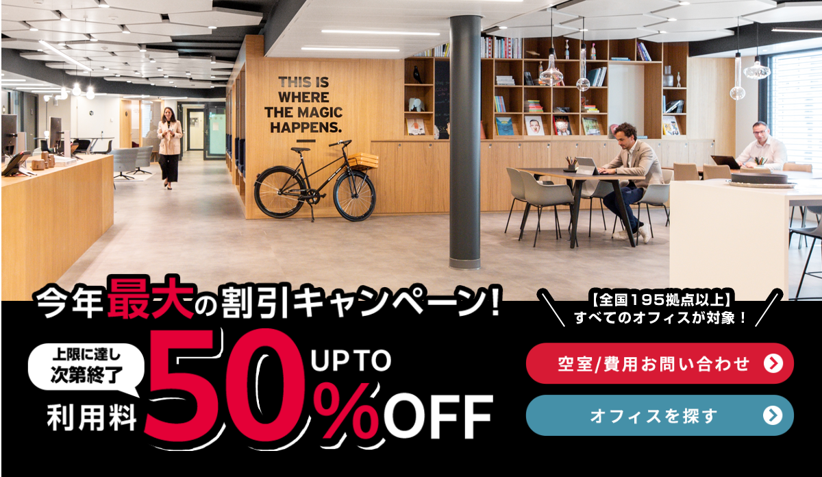 - 会議室予約:My Regusから予約すると「いつでも10%オフ」