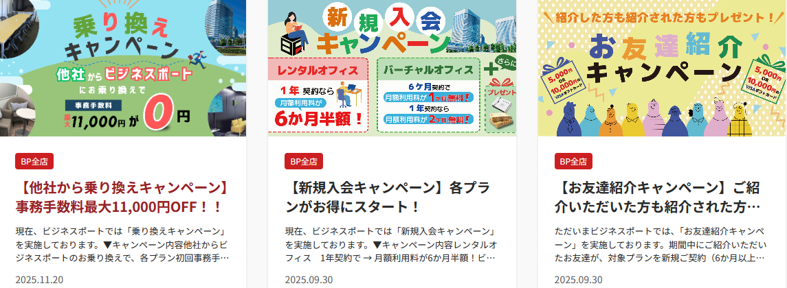 | 住所(登記可)/月 | 9,500円〜 | 9,900円〜 | 3,960円〜 | 2,220円〜 |