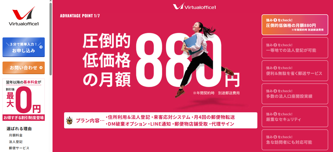 - 月額880円から始められる住所利用でコストを抑えたい起業家