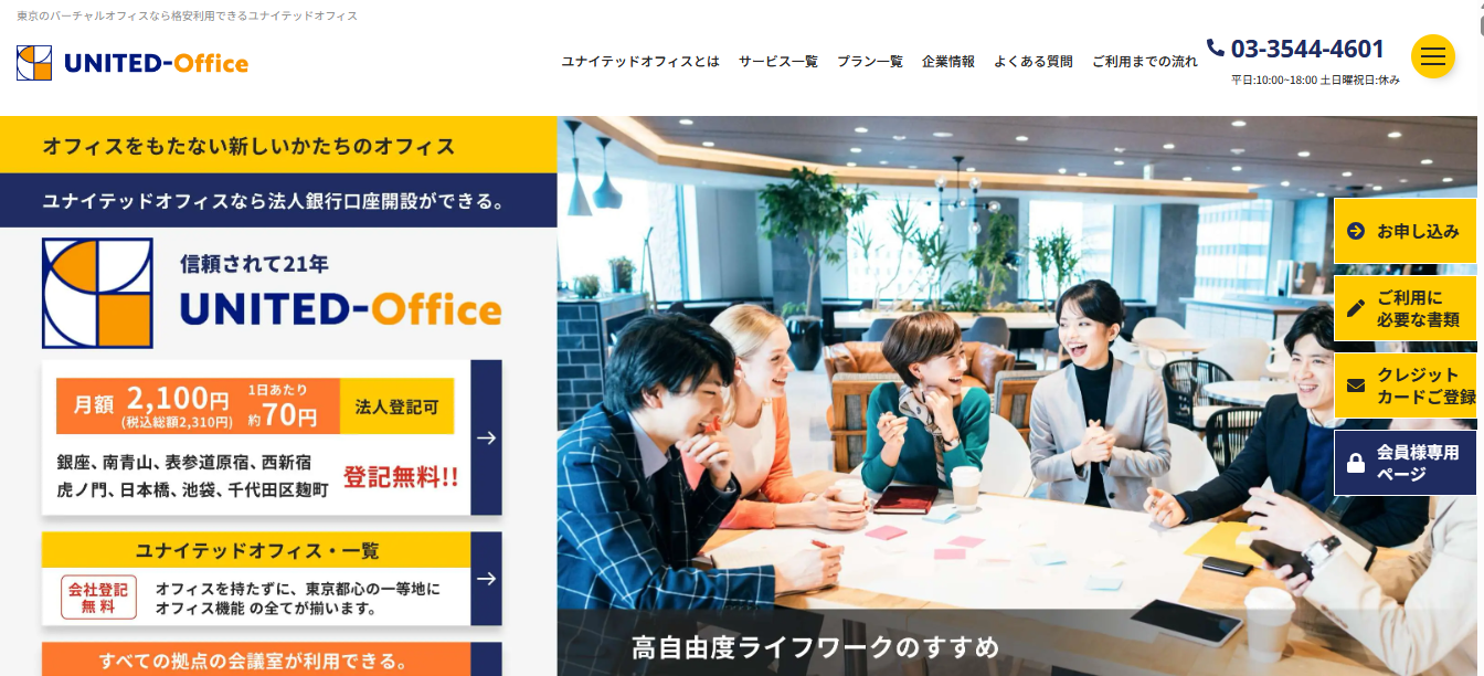 また、全国の会議室を利用できるのも大きな特徴で、商談・打ち合わせ・セミナーなどリアルで会う必要がある場面にも対応できます。加えて、03などの市外局番付き電話番号の発行、転送電話、電話秘書代行、FAX転送など、電話まわりのサービスが豊富なのも他社との違いです。