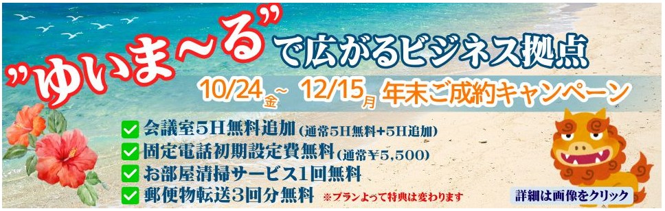 住所利用や登記、郵便転送、電話番号付与にも対応しており、沖縄で商談や対面利用の機会がある事業者にとって利便性の高い施設です。