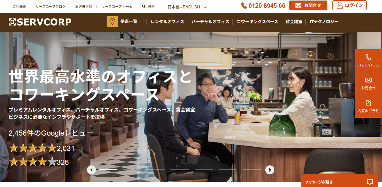 | 住所(登記可)/月 | 4,800円~ | 18,500円~ | 19,200円~ | 30,000円~ | 21,900円~ |