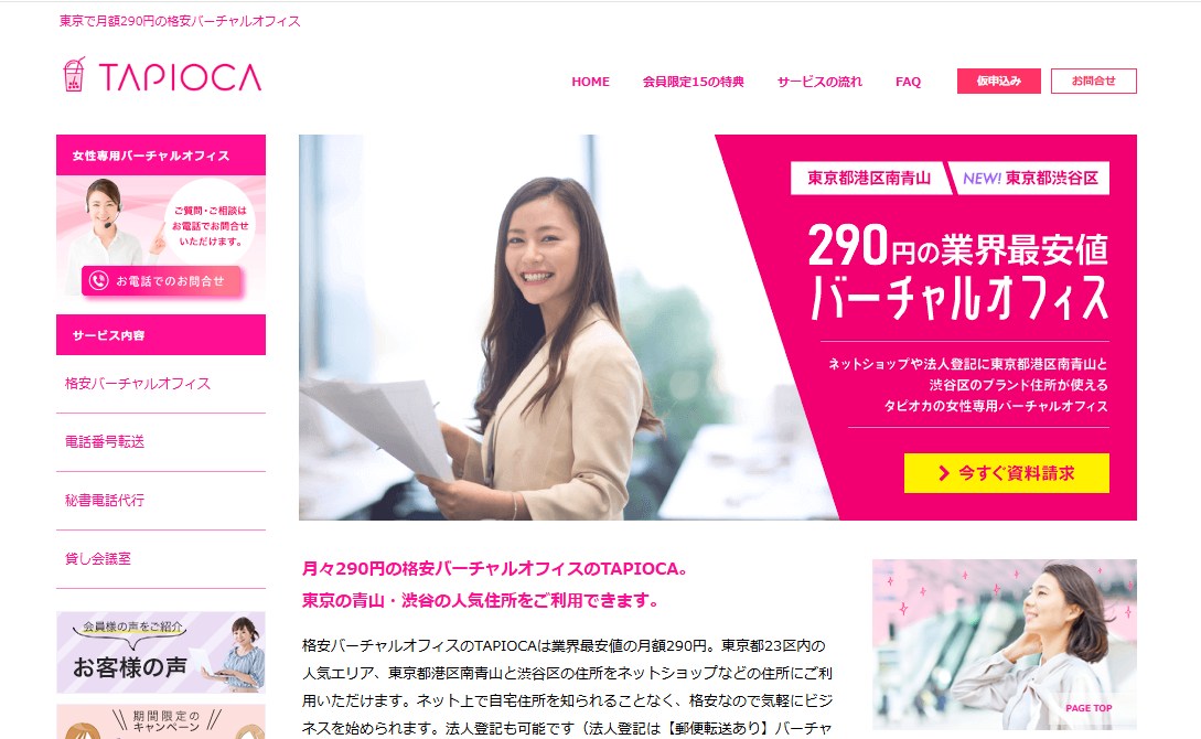 バーチャルオフィスの多くは男女問わず利用できますが、タピオカは女性専用。