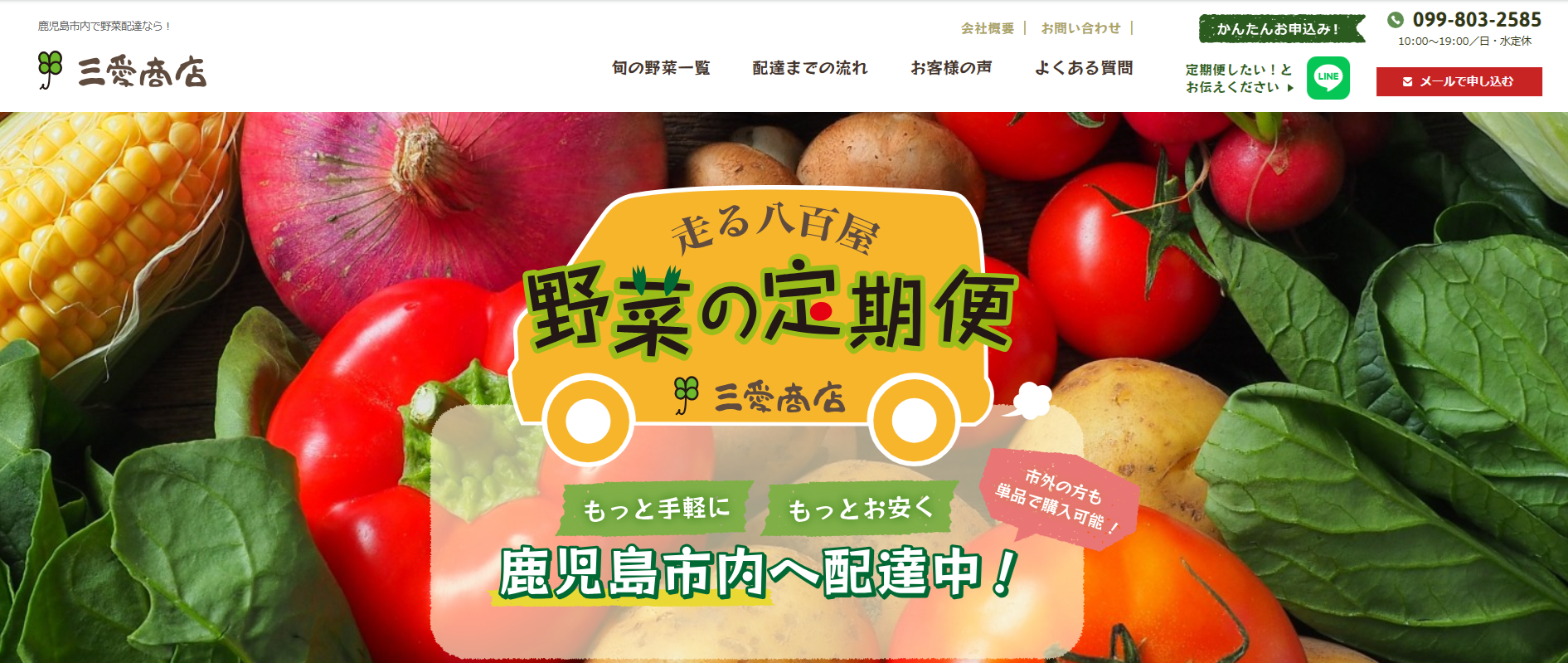 一人暮らしにおすすめの野菜宅配は、三愛商店です。