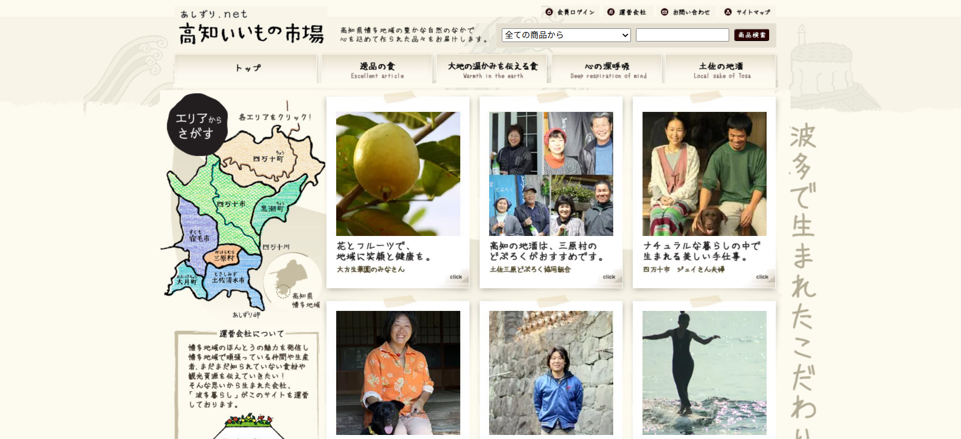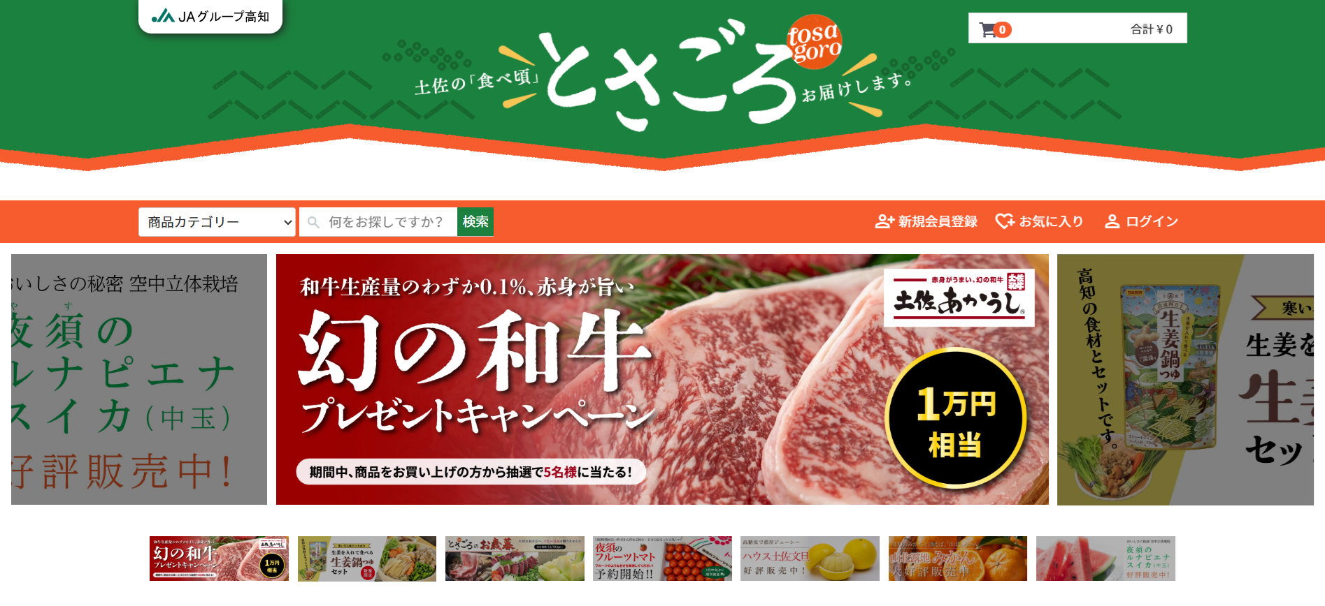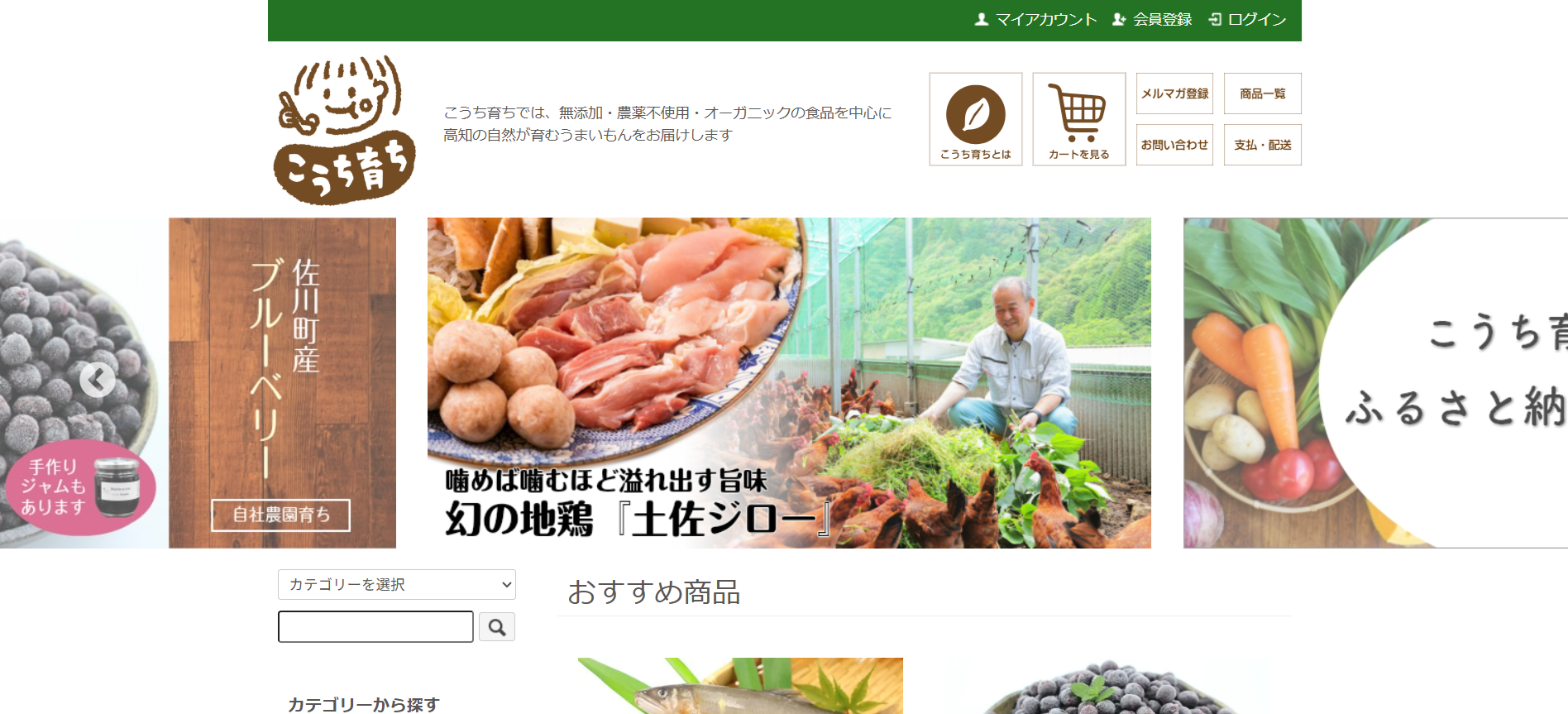 | 特徴 | 新鮮さと美味しさにこだわった青果物の産直サイト | 日本最大のオンライン直売所 | 「高知の自然が育むうまいもんをお届けします」をコンセプトとした通販サイト | 土佐れいほく地域の「食」を支えるお店 | 幡多地域の自然で作られたこだわりの品々がそろったストア |
