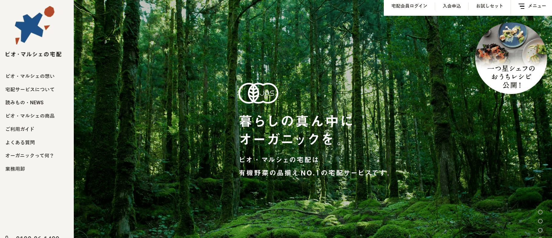 単にお腹を満たすための「食」ではなく、「オーガニックをきほんとする暮らし」がコンセプトのビオマルシェは、有機野菜やオーガニック食材を専門に扱う会員制の定期宅配サービスです。