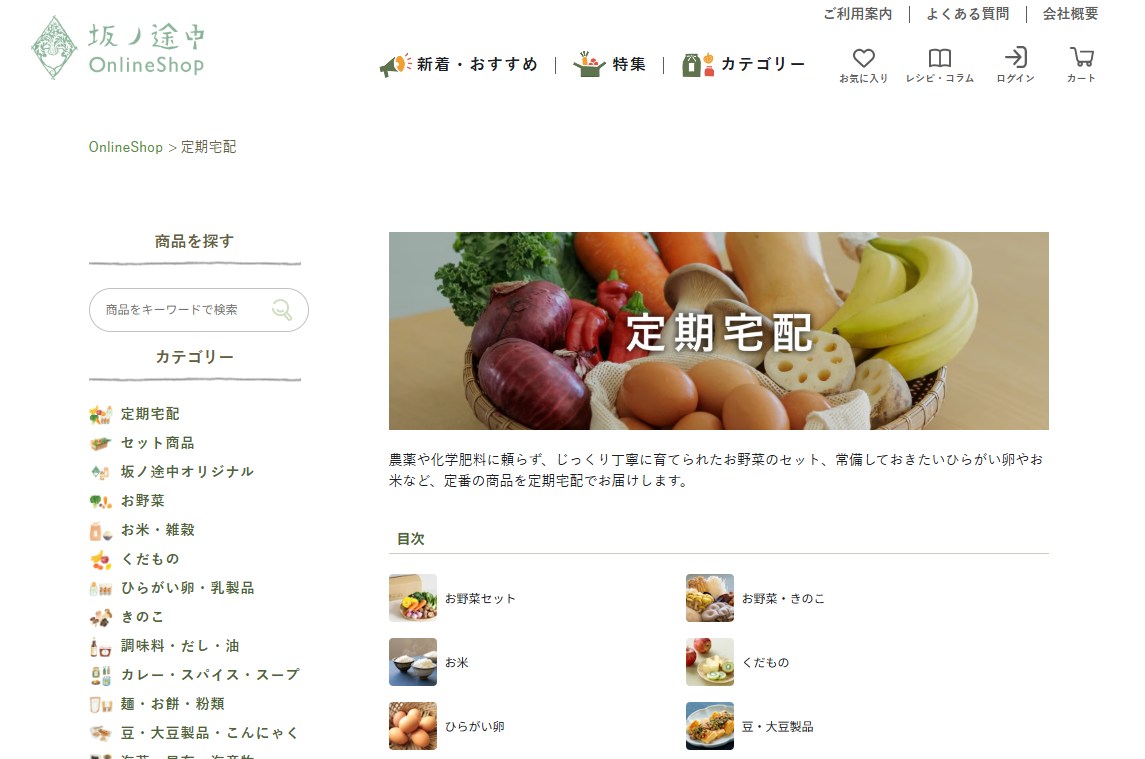 | 坂ノ途中 | ビオマルシェ | 大阪愛農食品センター | 今田自然農園 | 大地の恵みExpress | |